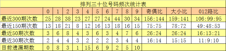 十位号码:前50期走势最活跃的号码为:2开出8个,8开出7个,1、5、9开出6个;走势最冷的号码为:0、4、6开出3个。十位号码012路比开出16:13:21,大小比开出26:24。本期十位排除两码:4、9,参考号码1、6、8,胆码关注8。