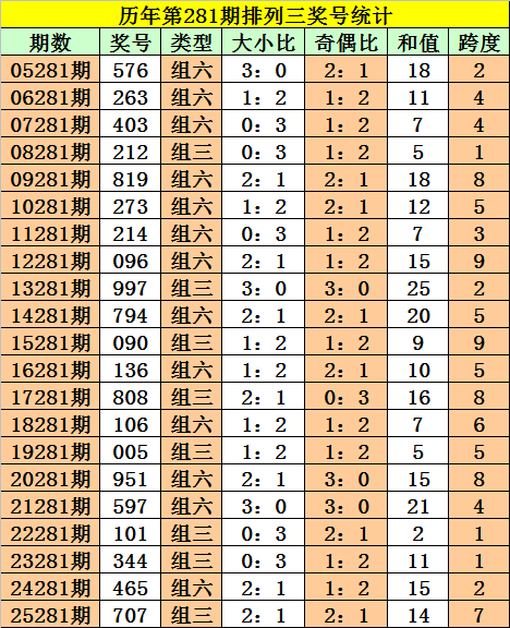 历年第282期奖号中:组三开出4次,组六开出16次。组六明显活跃,本期关注组六。