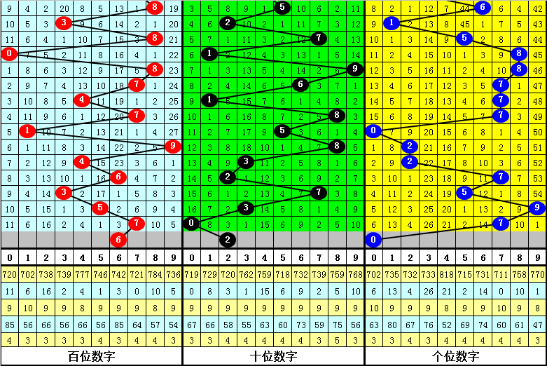历年第282期排列三奖号中,开出次数最多三码为:0、4、9,本期注意号码:0。