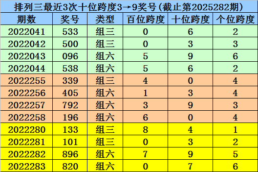 开奖回顾:第2025282期排列三奖号开出096,奖号奇偶比开出1:2,012路比开出3:0:0,跨度为9。