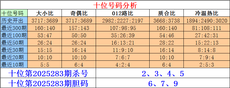 近期十位偶数表现较冷,目前遗漏1期,本期预计隔期回补;该位温冷号码近期出现较少,最近2期连续开出温冷号码,本期防温冷号码继续回补。十位杀号:2345,胆码关注:679。