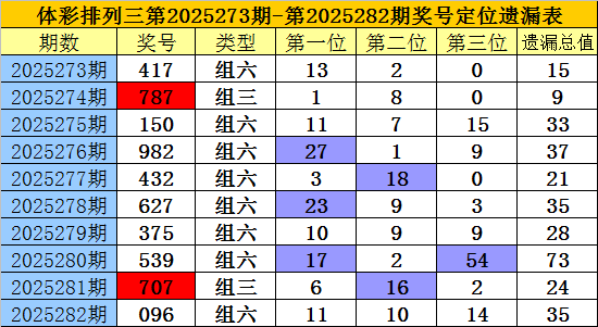 开奖回顾:排列三第2025282期奖号为:096,各位号码遗漏值分别为11、10、14,遗漏总值为35。