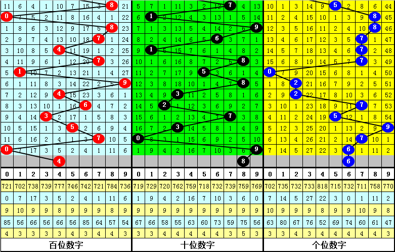 上期第一位开出奖号:0,间隔11期出现,走势为温码,最近10期该位热码表现非常低迷,本期适当关注该位热码逐渐回补,参考号码4。