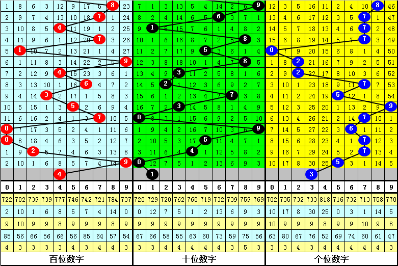 号码个数分析:历史上排列三第286期同期奖号中,号码0-9出现个数分别为:号码2开出3个,号码0、7开出4个,号码3开出5个,号码5、6开出6个,号码8、9开出7个,号码4开出8个,号码1开出10个,今年第286期排除号码0。