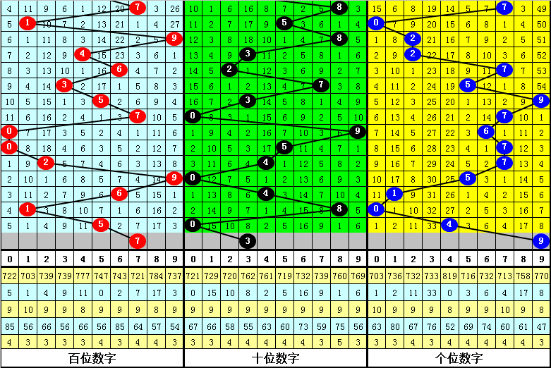 历史同期第289期十位号码开出为:0、8、9、4、3、3、0、8、0、4、2、3、4、1、4、9、2、6、9、0,振幅为9个点位,012路号码比例为11:5:4,大小 号码比例为6:14,奇偶号码比例为7:13,本期预计十位出现0路号码,独胆关注3。