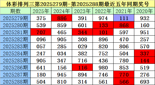 开奖回顾:排列三第2025288期奖号为:504,各位号码遗漏值分别为7、2、27,遗漏总值为36。