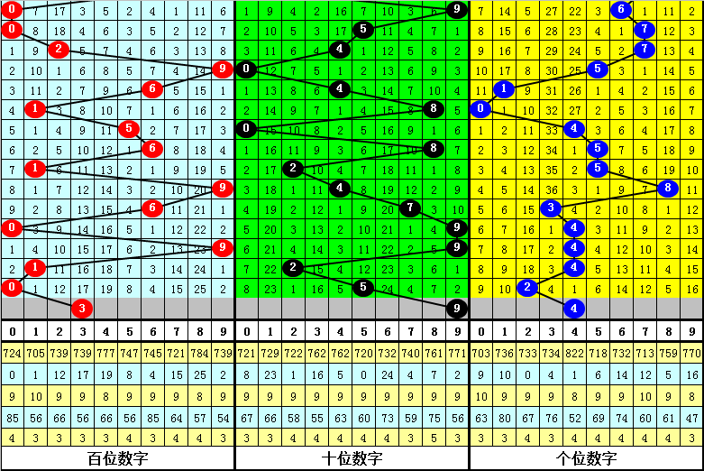 1.百位:最近9次大小总比例是5:4,奇偶总比例是5:4,012路总比例是5:3:1,本期预计百位开出号码3467,金胆看好为0路号3。