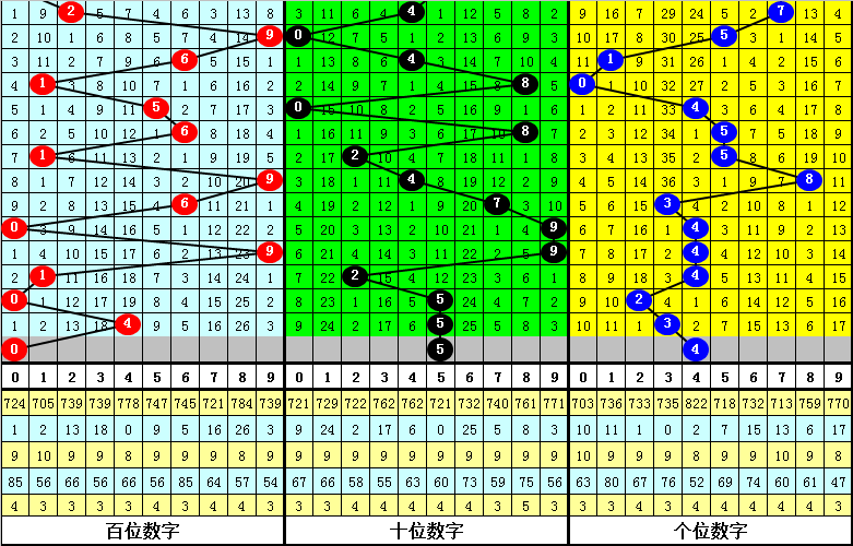 其中,号码0-9开出次数分别为:号码0开出3次、1开出2次、2开出4次、3开出2次、4开出4次、5开出4次、6开出4次、7开出3次、8开出0次、9开出4次。