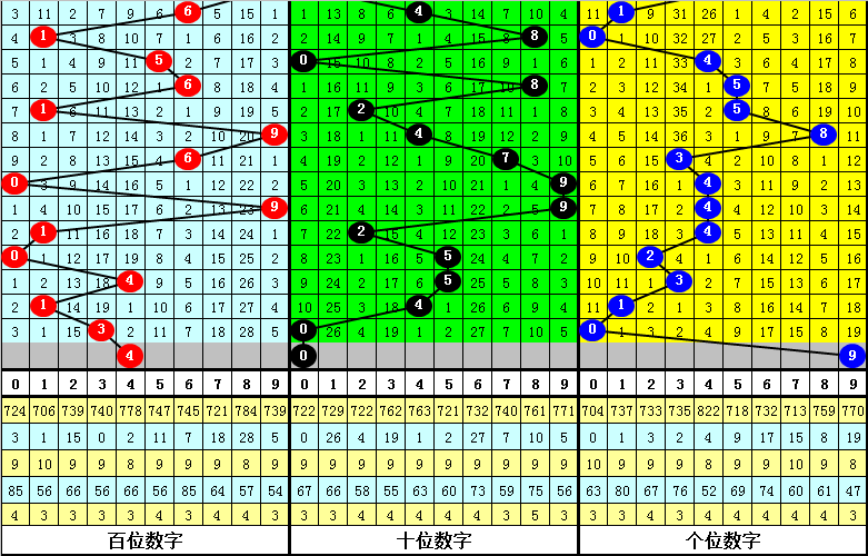 百位:最近小 号出现频率较高,当前连续出现了5期,本期适当关注该位小 号再出;另外,该位0路和1路号码在最近20期奖号中走势较热,2路号码表现相对较冷,本期该位放弃2路号码,参考号码4。