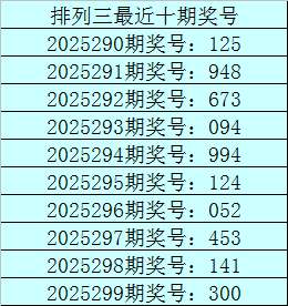 开奖回顾:排列三第2025299期奖号:300,类型:组三,奇偶比1:2,大小比0:3,和值3,跨度3。