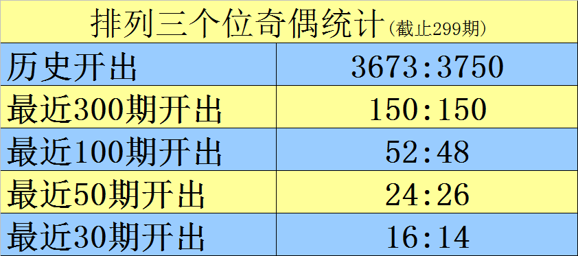 上期回顾:排列三2025299期奖号为300,类型为组三,奇偶比为1:2,大小比为0:3,和值为3。
