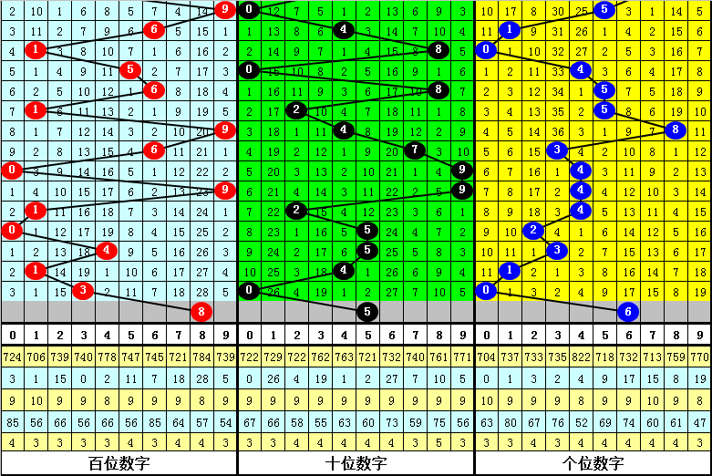第二位3-6之间的中号开出11个,目前遗漏1期,其中号码6出现1次,目前遗漏27期;号码3出现2次,目前遗漏19期;号码5出现4次,目前遗漏2期;号码4出现4次,目前遗漏1期。