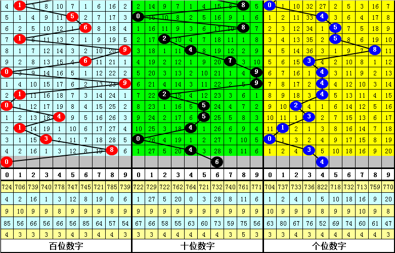 出现次数最少的三个号码分别为:0、3、5,本期预计这三个号码不会同时出现,排除号码:5。