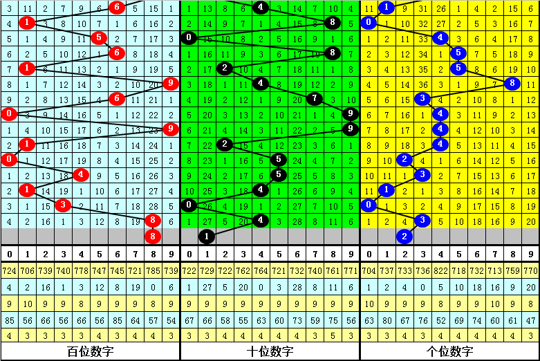 012路分析:历史上排列三第301期同期奖号中,012路奖号总个数比为21:21:18,012路奖号轮空期数比为7:5:8,今年第301期预计0路号码走冷轮空,看好012路比开出0:1:2。