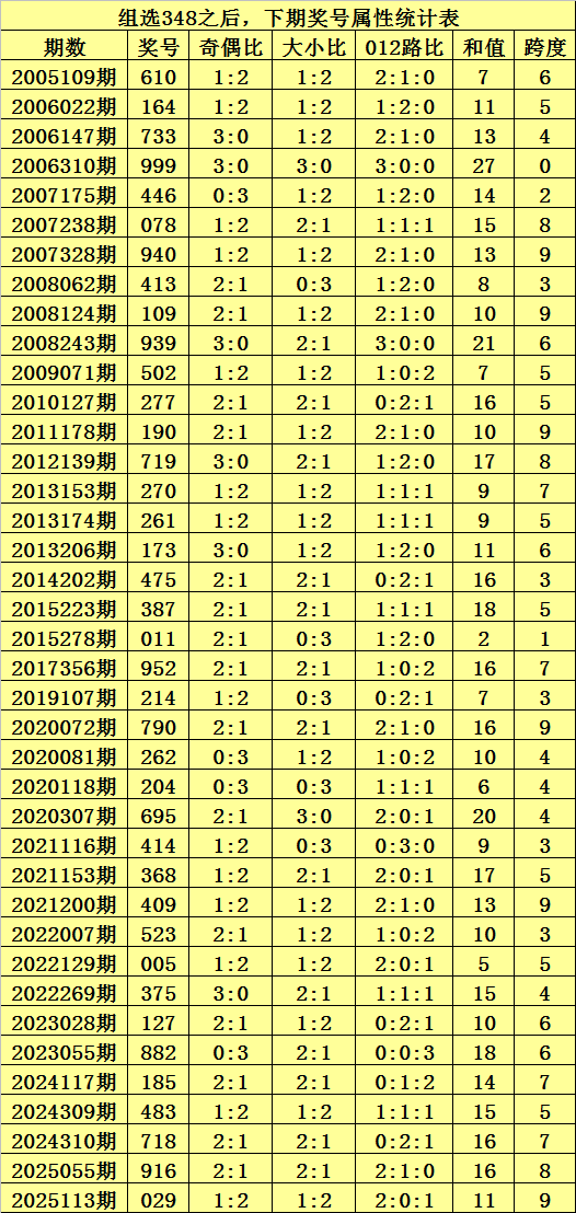 二、组选348分析:排列三历史上已开出40次组选号码348了,其奖号和下期开出奖号统计如下: