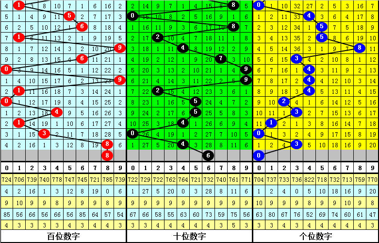 百位目前最冷号码为:7,当前遗漏19期,该号码历史最大遗漏为64期,本期防百位7解冻;