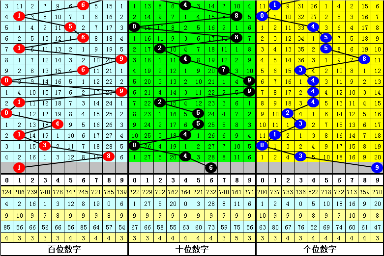百位:上期开出8,偶数,奇号最近两周热出,奇号遗漏1期,本期回补,关注1。