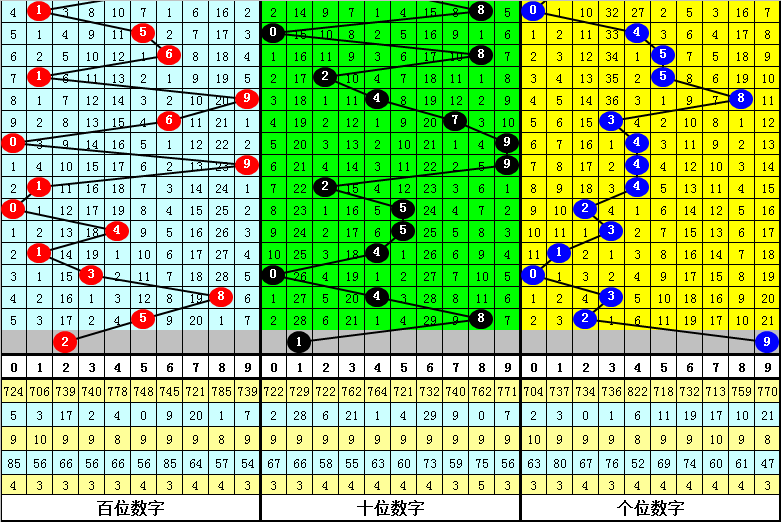 中号球:上期奖号为8,开出大号、偶号,该位前10次开出大号、偶号的现象时其奖号分别为:364、983、583、561、281、767、787、982、180、685,其中中号球012路比为3:0:7。