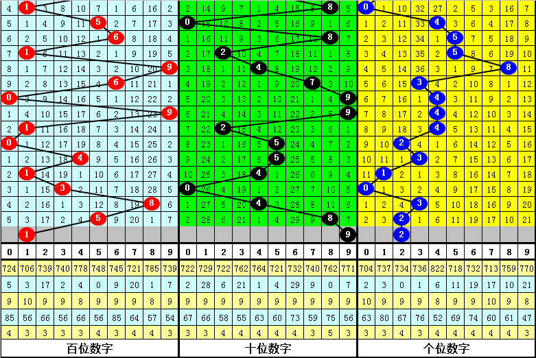十位号码:前50期走势最活跃的号码为:4、8、9开出7个;走势最冷的号码为:6开出2个,3开出3个,1、7开出4个。十位号码012路比开出17:15:18,大小比开出25:25。本期十位排除两码:1、4,参考号码6、7、9,胆码关注9。