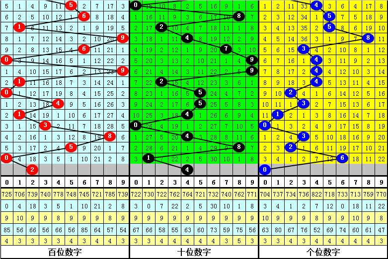 在百位前9次出现号码0之后,下期百位分别开出奖号:2-0-3-4-8-0-2-9-4,其中开出号码个数012路比是4:2:3,奇偶比是2:7,大小比是2:7。