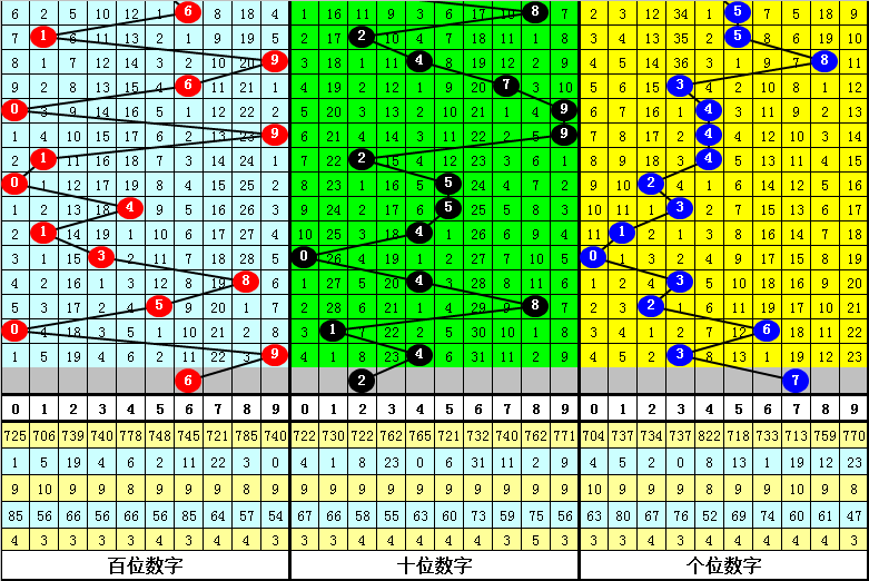 在连续10期开奖中,和值振幅分别为:9-15-0-5-6-3-12-0-8-9,开始上升,和值比较分散,本期预计和值小幅调整,出现在中部区域。