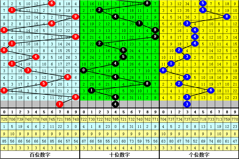 十位号码:前50期走势最活跃的号码为:4开出8个,8开出7个,2开出6个;走势最冷的号码为:6开出2个,3开出3个,7开出4个。十位号码012路比开出15:17:18,大小比开出23:27。本期十位排除两码:3、9,参考号码1、2、4,胆码关注4。
