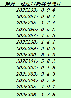 上期回顾:排列三第2025306期奖号:178。和值16,跨度7。