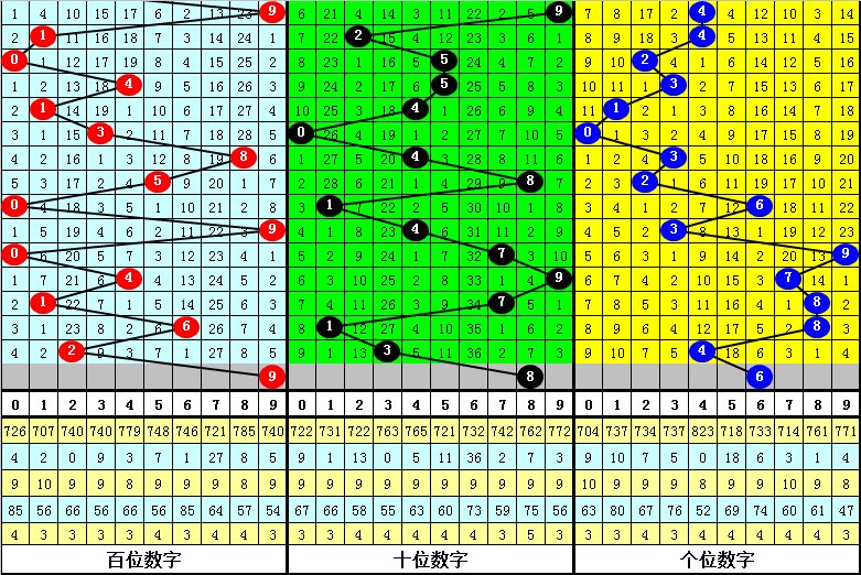 在历年同期中两码合开出年限分别为:1出现8年,2、7出现7年,0、4出现6年,5、9出现5年,8出现4年,6出现3年,3出现2年,第2025309期预计两码合出现:4、5、7。