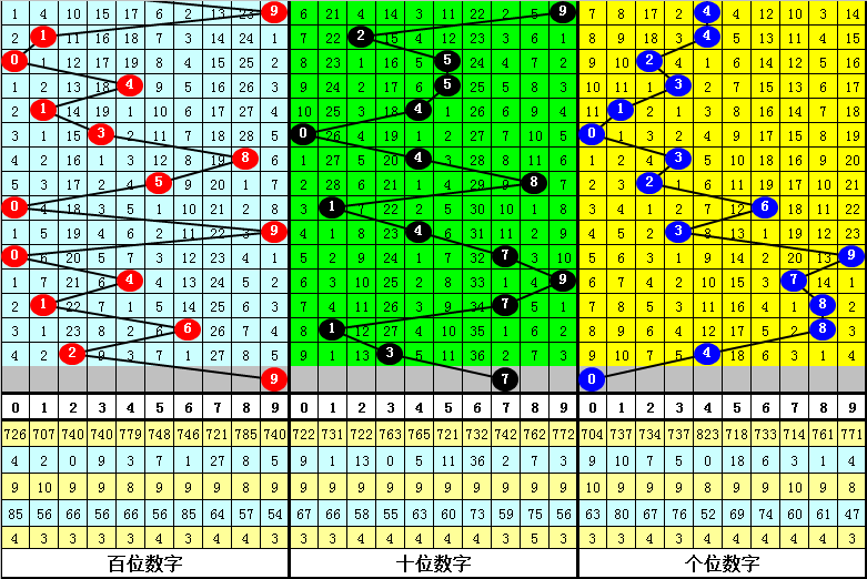 十个位合推荐:最近三期十个位合分别出现5-9-7,本期预计十个位合开出1路号,两码关注07。