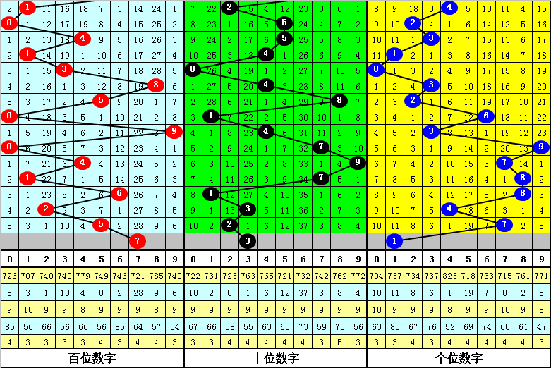 从以上统计可以看出,百十位两码合差7与3同时出现之后其下期两码合差表现最热的4个分别为:0234,本期百十位两码合差可以参考这四码中的数据。