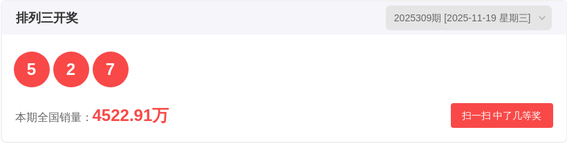 排列325309期开奖结果5 2 7,012路比0:1:2,奇偶比2:1,跨度5,质合比3:0。