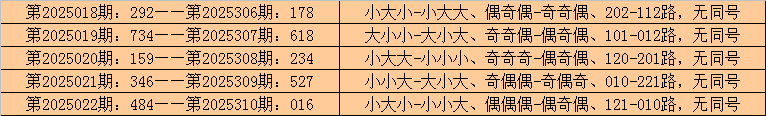 排列三第2025306期-第2025310期连续5期奖号为:178-618-234-527-016。