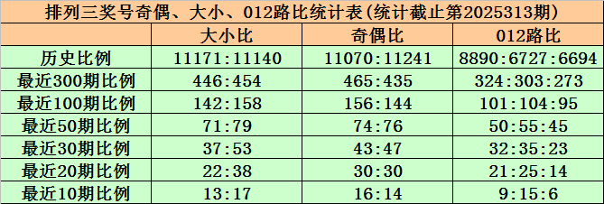 上期回顾:排列三第2025313期出现奖号445。开出组三,奇偶比1:2,012路比0:2:1,大小比1:2,和值13,跨度1。