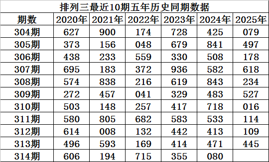 程成排列三第2025314期推荐: