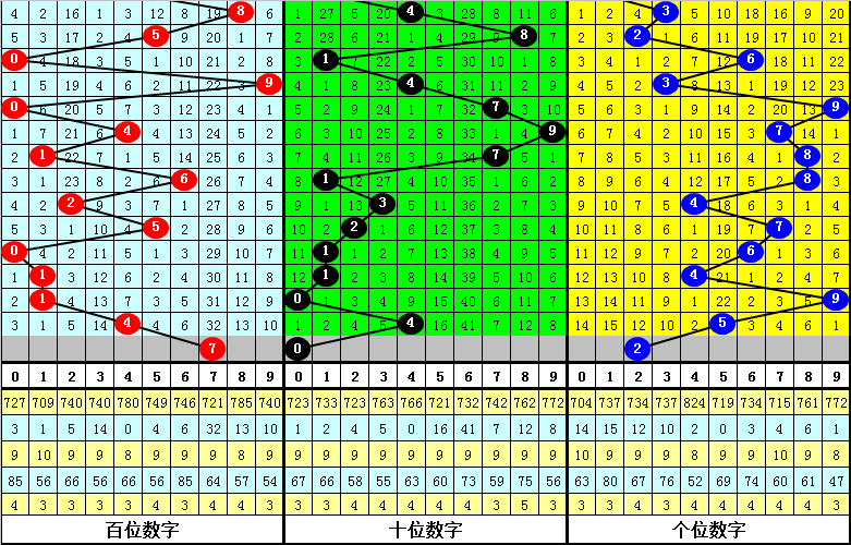 百位分析:该位最近10期出现范围在0-6之间,波动了7个点位,波动范围较大,上期开出号码4,上升了3个点位,本期预计该位号码上升。另外该位最近10期大小比为2:8,大号走冷,本期看好大号回补,参考号码7。