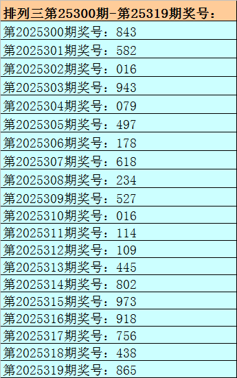 1.排列三最近十期分别开出号码:016-114-109-445-802-973-918-756-438-865,其中有4期奖号开出了上期的重复号码,本期预计第2025319期奖号:865中有重号,参考号码:6。