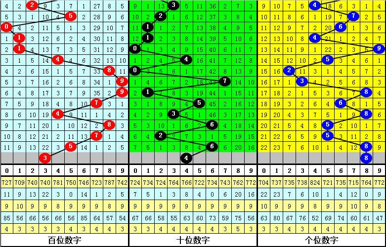 百位分析:该位最近10期出现范围在1-9之间,波动了9个点位,波动范围较大,上期开出号码5,下降了2个点位,本期看好该位号码下降。另外该位最近10期大小比为7:3,小 号表现较冷,本期看好小 号逐渐回补,参考号码3。