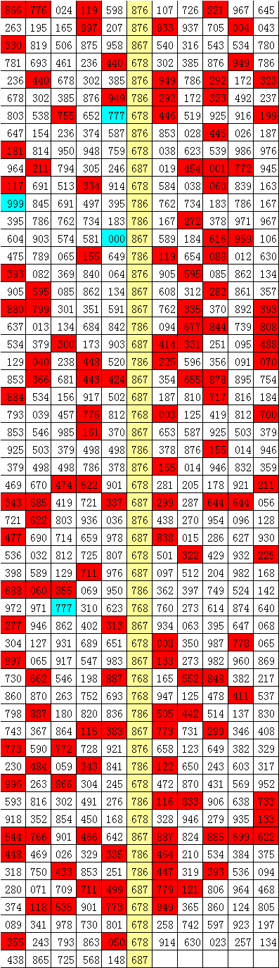 在以上统计表中,组选号码678开出之后,其下期组三号码出现22次,组六号码出现32次。其中,下期奖号有22期无重号,有32期开出重号,本期预计重号开出,看好开出组六号码。