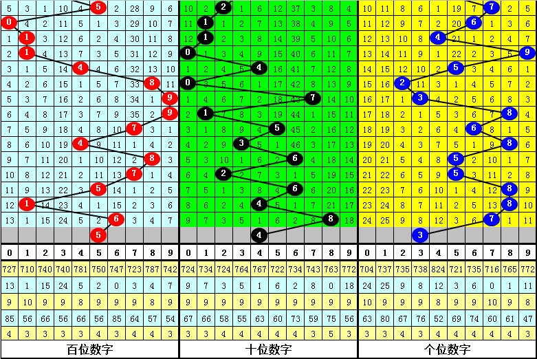 历史同期第324期十位号码开出为:7、1、5、4、7、2、5、8、6、8、9、7、2、3、7、3、4、0、3,振幅为9个点位,大小 号码比例为10:9,奇偶号码比例为11:8,012路号码比例为6:7:6,本期十位看好出现小 号,注意号码4。