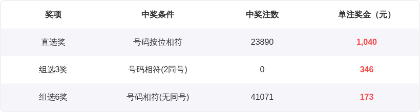 | 期号 | 开奖号码 | 和值尾 | 跨度 | 质合比 |