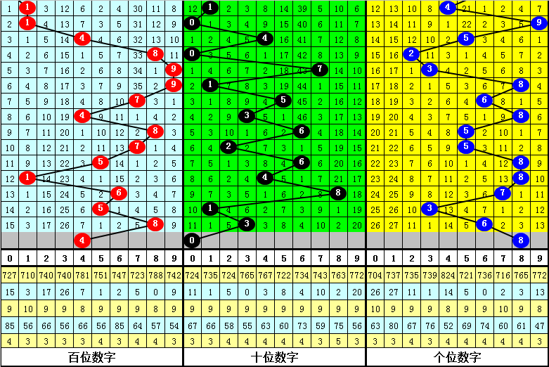 在连续10期开奖中,和值振幅分别为:1-0-3-4-5-5-6-8-12-8,逐渐下降,和值比较分散,本期预计和值小幅调整,出现在中部区域。
