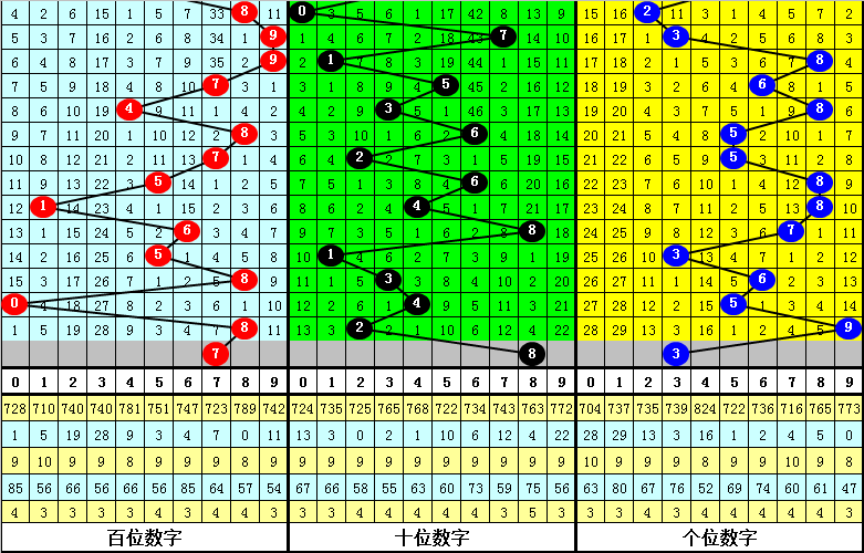 个位号码上期为9,合号,质号最近开出频次较高,质号当前轮空1期,本期注意质号逐渐回补,参考号码3。