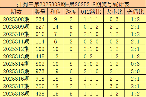开奖回顾:排列三第2025329期奖号开出:370,组选类型:组六,大小比为1:2,奇偶比为2:1,和值为10,跨度为7。