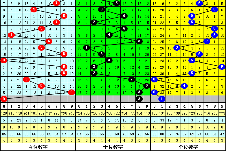 和值分析:在第332期历史同期开奖中,奖号和值共开出15个,和值波动区间在2-24之间,分布范围相对较广,其中0-9区段和值开出5次,在10-17区段出现9,在18-27区段开出5次,本期预计和值走小,出现在0-9区段。