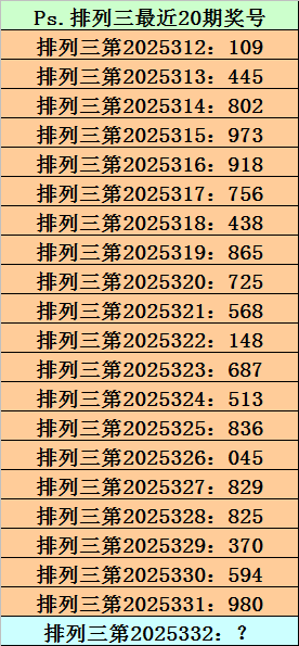 第2025331期排列三奖号为980,历史上该号码直选出现5次,下期奖号分别为:402、962、525、746。