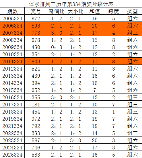 排列三第2025334期奖号为583,奇偶比为2:1,大小比为2:1,和值为16,跨度为5。