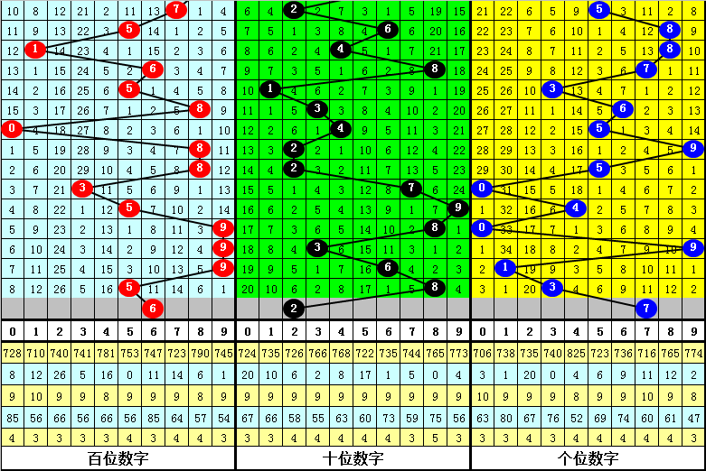 5.下期奖号跨度分别开出:5、9、5、5、3、9、6、1、3、5,其中跨度012路比为5:1:4,大小比7:3,奇偶比为9:1,本期适当关注2路跨度开出,参考跨度5。