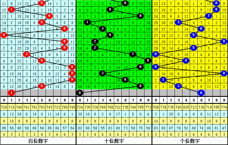 其中,百位奇偶比为5:2,大小比为3:4,本期百位一码参考1。