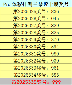 开奖回顾:体彩排列三第2025334期奖号为:583,类型:组六。