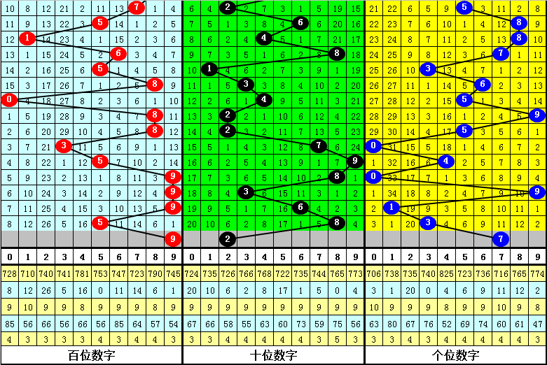 个位:上期为3,质号,质号最近两周明显较冷,连出2次,本期再次关注质号,看好7。